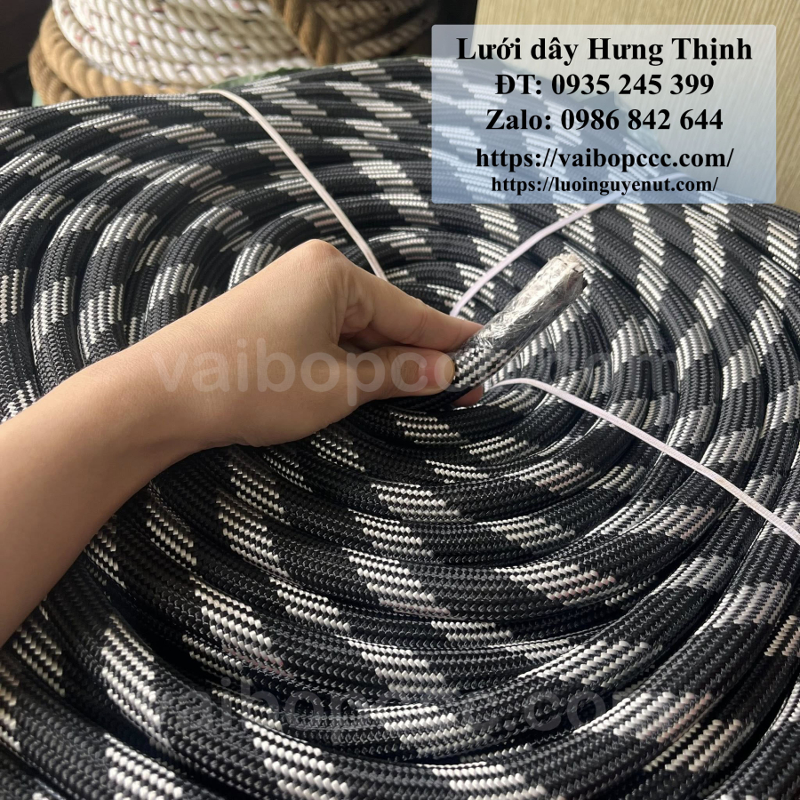 Dây đu sơn nước 3 da phi 16 màu đen chất lượng cao, bền chắc, càng dùng càng mềm, thích hợp treo, căng và cố định vật dụng trong công trình, nông nghiệp và sinh hoạt. Lưới Dây Hưng Thịnh. Liên hệ Mr. Hưng 0935 245 399 – Zalo 0986 842 644.
