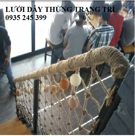 Tại các nhà hàng, lưới thừng giúp tạo ra điểm nhấn trang trí độc đáo, đồng thời có thể dùng để treo các phụ kiện trang trí, cây xanh giả hoặc thật, mang lại cảm giác gần gũi với thiên nhiên. Sự kết hợp giữa lưới thừng và các chất liệu tự nhiên khác như gỗ, đá hay mây tre sẽ tạo nên phong cách rustic hoặc boho rất được ưa chuộng.