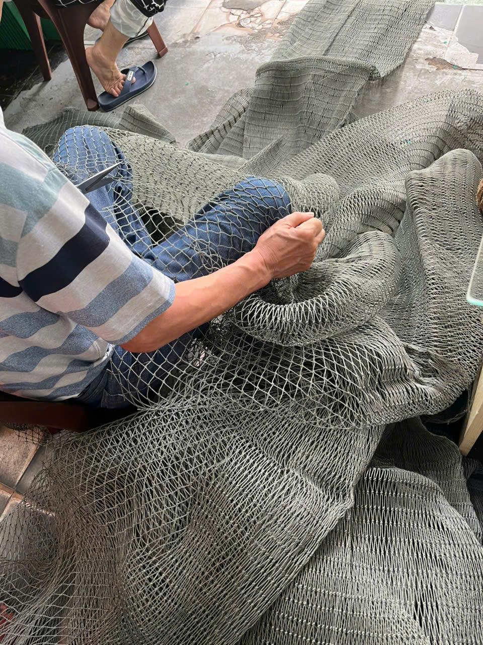 Chiếc lưới ấy theo chân cha ông từ thuở bé, từng gắn liền với tuổi thơ trần mình dưới nắng mặn mòi, lần mò vá từng mắt lưới bị rách. Rồi khi lớn lên, chiếc lưới ấy lại trở thành kế sinh nhai, là thứ tài sản quý giá mà họ gìn giữ như chính niềm tin vào cuộc sống.